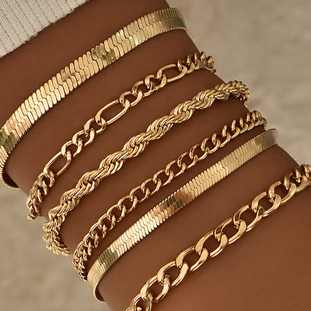 Conjunto de Pulseras de Cadena Cubana de 6 Piezas