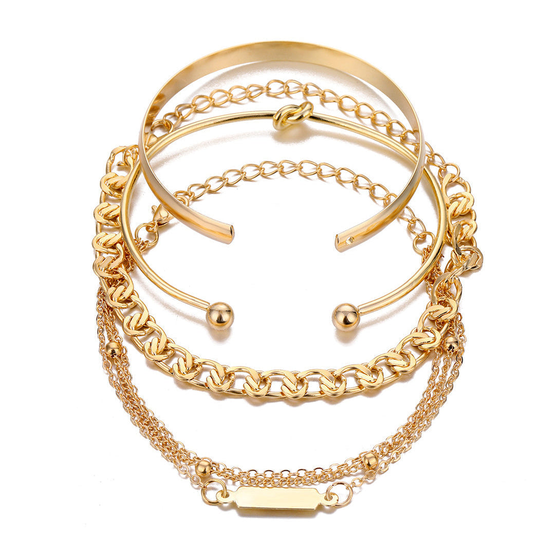 Juego de Pulseras de Cadena de Metal de 4 Piezas