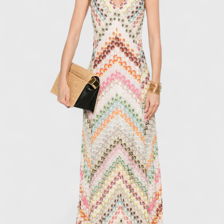 Agustina Vestido Largo de Encaje con Escote en V y Motivo Zigzag