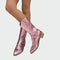 Estrella | Botines De Cowboy Metálicos En Rosa Con Bordado