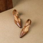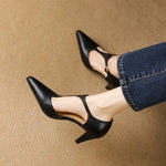Adéntrate en la sofisticación con nuestros tacones de punta, que cuentan con un elegante empeine con tira T y suaves curvas que exudan elegancia clásica. Fabricados en cuero genuino, estos tacones están diseñados para la comodidad y el estilo.