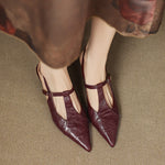 Eleva tu estilo con nuestros elegantes tacones, elaborados con cuero genuino suave. Con un diseño de tira en T moderna y una punta afilada, estos tacones ofrecen una silueta chic que es perfecta para cualquier salida nocturna.