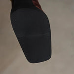 Entra en la elegancia con nuestro zapato de tacón de cuero premium, que presenta lujosos acentos de ante y un tacón cuadrado contemporáneo. La chic puntera cuadrada y la correa de hebilla segura garantizan un ajuste elegante para cualquier ocasión, ya sea formal o casual.