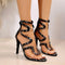 Deslumbra con un glamour audaz. Nuestro tacón con correa serpentina está confeccionado en material premium grabado en pitón con bordes pulidos y bandas de soporte transparentes para una línea limpia, digna de galería. Una plantilla ortopédica acolchada y un tacón equilibrado te mantienen firme y cómoda, mientras que el diseño con cierre en el tobillo ofrece un acabado exclusivo y listo para fotos para las noches de salida y eventos de alto perfil.