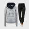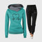 Este conjunto deportivo combina estilo, comodidad y un toque romántico. Su sudadera rosa con capucha y diseño de corazón con línea de pulso, junto con el pantalón negro ajustado, crean un look moderno y equilibrado.