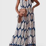 Haz una entrada impactante con Gabriella: un mono fluido de pierna ancha diseñado para captar la atención. Con su favorecedor escote en V, delicados tirantes de espagueti y cinturón que define la cintura, este look combina un estampado audaz con una sofisticación sin esfuerzo. Ideal para escapadas soleadas o planes nocturnos elegantes.