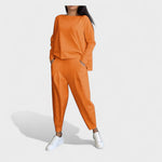 Conjunto perfectamente coordinado que combina comodidad y sofisticación.