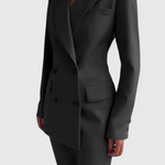 Redefine el vestuario de poder con Jolene—un conjunto refinado de dos piezas que combina una sastrería limpia con una facilidad femenina. Con un blazer estructurado y pantalones de pierna ancha, Jolene ofrece una silueta pulida y comodidad durante todo el día en igual medida. Ideal para reuniones de negocios, citas para cenar, o donde la confianza sea clave.