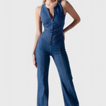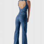Conoce el mono de mezclilla que roba corazones—literalmente. Maisie combina el atractivo audaz de la mezclilla con un toque femenino, gracias a su llamativa espalda abierta en forma de corazón. Las costuras en V favorecedoras ajustan la cintura, mientras que el ligero acampanado en las piernas añade un toque elegante y atemporal.