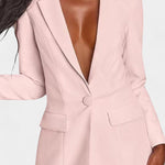 • Blazer de un solo botón con escote en V profundo y hombros definidos