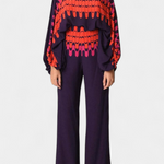 El conjunto Sybella combina una blusa con hombros descubiertos y mangas de farol con pantalones de pierna ancha y estampado artístico. Diseñado para ofrecer una silueta fluida con personalidad, es perfecto para días soleados, escapadas relajadas o encuentros con estilo.