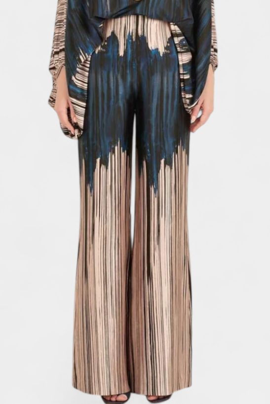 El conjunto Sybella combina una blusa con hombros descubiertos y mangas de farol con pantalones de pierna ancha y estampado artístico. Diseñado para ofrecer una silueta fluida con personalidad, es perfecto para días soleados, escapadas relajadas o encuentros con estilo.