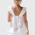 El conjunto Victoria es la definición de encanto relajado. Diseñado para los días cálidos donde la comodidad se encuentra con el estilo, este set combina un top sin mangas con volantes y pantalones cortos a juego para un look fresco y femenino. Ideal para descansar, pasear o simplemente disfrutar del momento con ligereza.