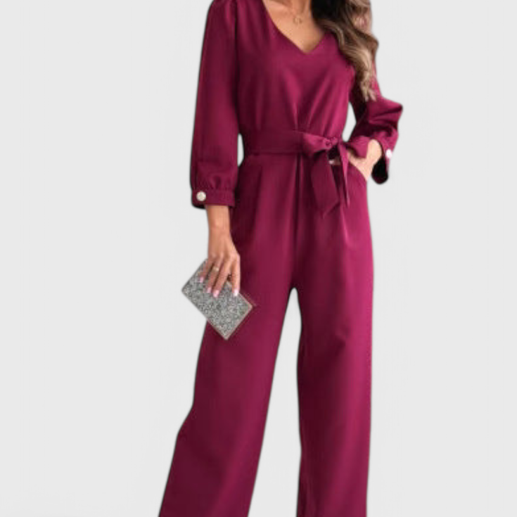 Ariane Mono de Pierna Ancha con Escote en V y Cintura con Lazo
