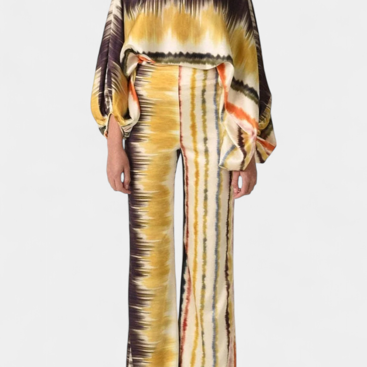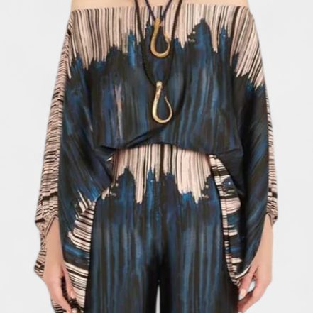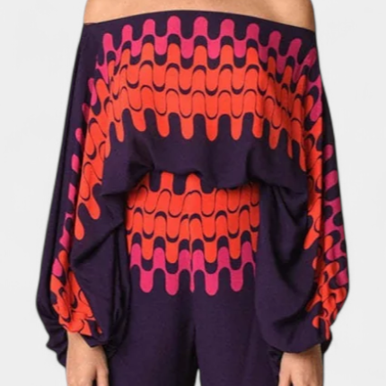 Sybella Conjunto de Dos Piezas con Hombros Descubiertos y Pantalones Amplios Estampados