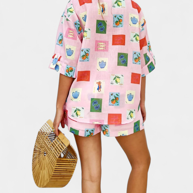 Lumina Conjunto Tropical con Camisa Holgada y Shorts de Cintura Alta