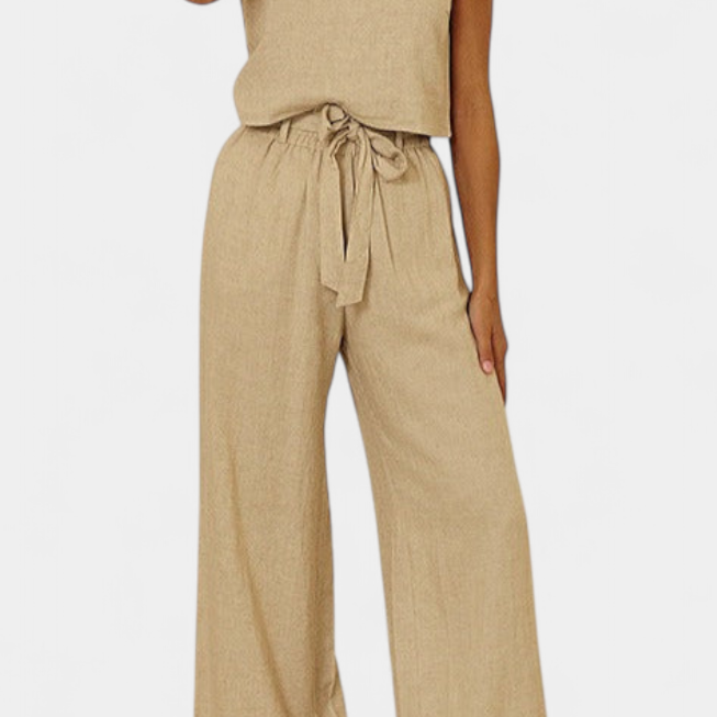 Pascuala Conjunto de Lino de Dos Piezas con Blusa sin Mangas y Pantalón Fluido