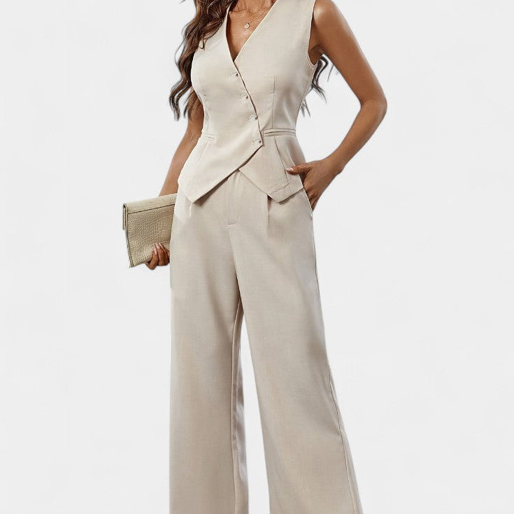 Heskia Conjunto de Chaleco Sin Mangas y Pantalones de Pierna Ancha