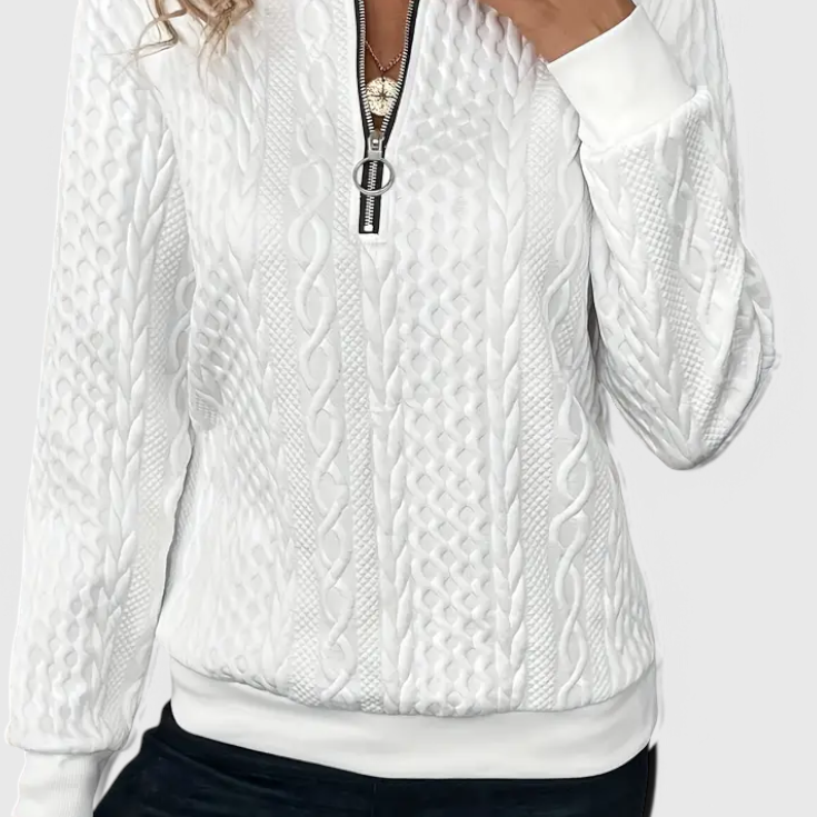 Helene Jersey de Cuello en V con Cremallera y Manga Larga