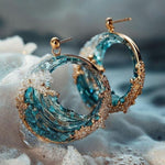 Hechos a mano con cuidado y pasión, estos pendientes capturan la magia de las olas en movimiento. La transparencia acuática de la resina azul, combinada con brillantes arrugas doradas y de cristal, cuenta una historia de fuerza y refinamiento, perfecta para acompañarte en cualquier ocasión especial.