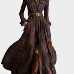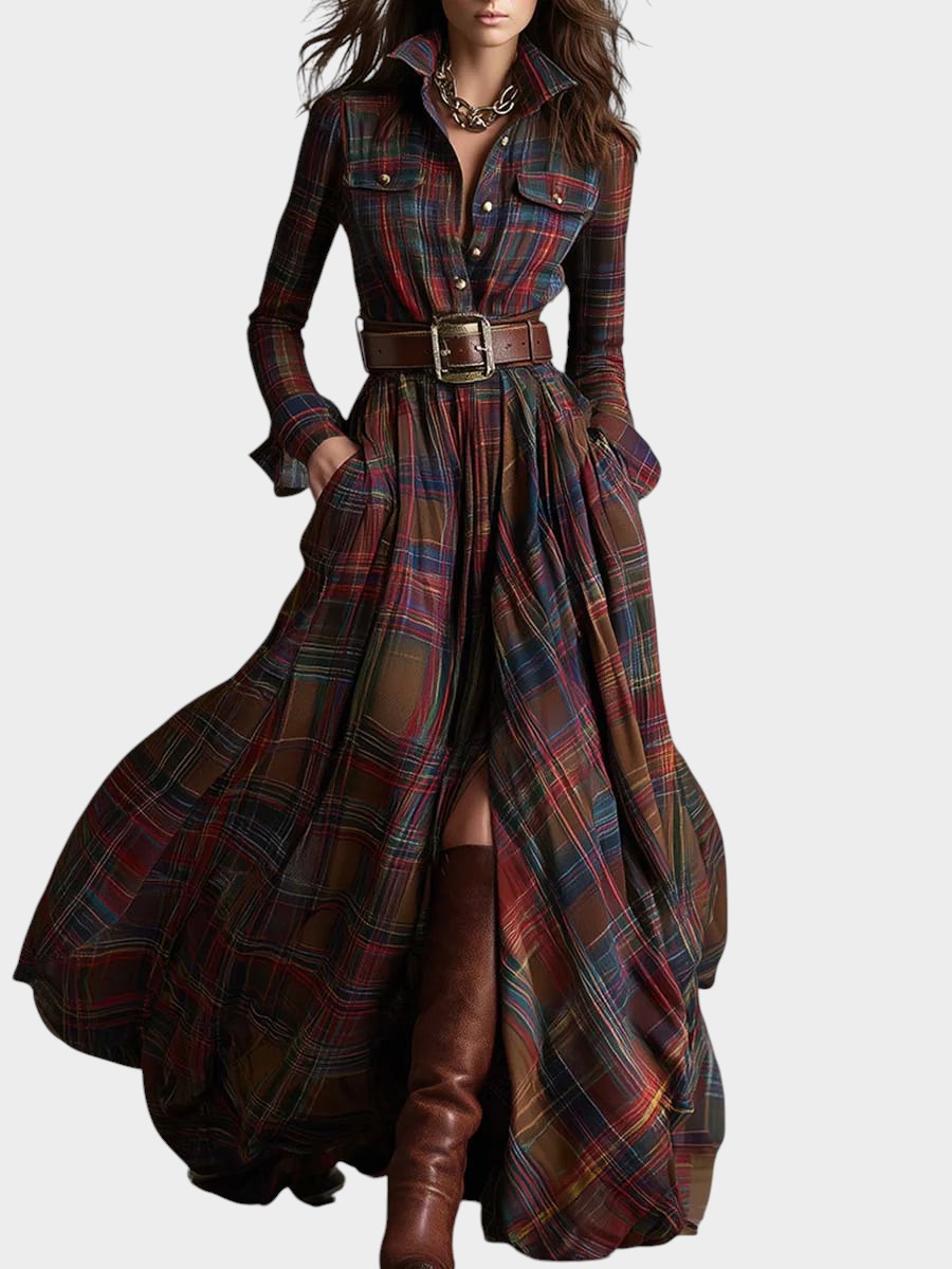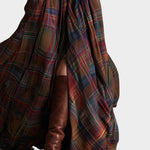 Diseño de inspiración vintage, con estampado de cuadros rojizos y marrones.