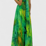 Romanticismo ligero con una silueta que flota con cada paso. El vestido Caprice está confeccionado en gasa vaporosa con un estampado floral delicado y un elegante cuello halter anudado que enmarca los hombros con sutileza. Su corte suelto y fluido ofrece una caída relajada con encanto etéreo.