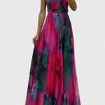 Caprice Vestido Maxi de Gasa con Estampado Floral y Cuello Halter