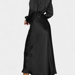 Femenino, elegante y con presencia refinada, el vestido Cecila combina una silueta maxi fluida con un cuello alto estructurado y falda con detalles florales. Su diseño es ideal para quienes buscan destacar con sofisticación en ocasiones especiales sin renunciar a la comodidad.