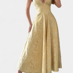 Gilda Vestido Midi Jacquard con Espalda Abierta y Cintura Alta