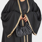 Un diseño que irradia elegancia serena y feminidad sofisticada. La abaya Ginebra realza la silueta con su caída fluida y el distintivo bordado dorado en forma de hojas, aportando un aire clásico y refinado a cualquier conjunto. Ideal para ocasiones especiales, eventos religiosos o simplemente para elevar tu día a día con un toque majestuoso.
