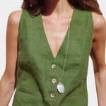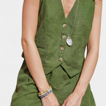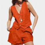 Jennifer Conjunto Chaleco y Pantalones Cortos de Lino Algodón