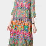 Ligero, colorido y encantador, el vestido Kate es una oda a la alegría veraniega. Su diseño midi en capas, el escote en pico y las mangas tres cuartos transparentes crean una silueta femenina con carácter. El estampado floral multicolor aporta un aire artístico vibrante que no pasa desapercibido.