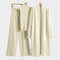 • Set de 3 piezas: abrigo largo, chaleco canalé y pantalón ancho.