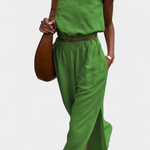 • Diseño sin mangas y pantalón de pierna ancha para un look pulido y relajado