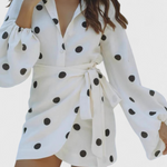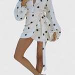 Romara Vestido Mini de Lunares con Manga Larga y Cintura Entallada