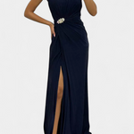 Una fusión impecable de fluidez, elegancia y presencia escénica. Shiloh destaca por su confección en tela ligera, plisado meticuloso y abertura lateral que acompaña cada movimiento con gracia. El escote cruzado enmarca delicadamente el busto, mientras que la silueta fluida alarga la figura con sutileza y sofisticación.
