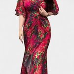 Sima Vestido Cruzado Estampado con Escote en V y Mangas Acampanadas