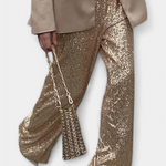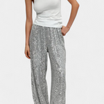 Irradia glamour y seguridad con Elva: unos pantalones de lentejuelas diseñados para brillar con fuerza propia. Su corte holgado y cintura alta realzan la figura con elegancia, mientras el acabado brillante transforma cualquier look en una declaración inolvidable. Perfectos para noches de fiesta, celebraciones o simplemente cuando quieras destacar.