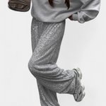 Elva Pantalones de Lentejuelas de Cintura Alta y Corte Holgado