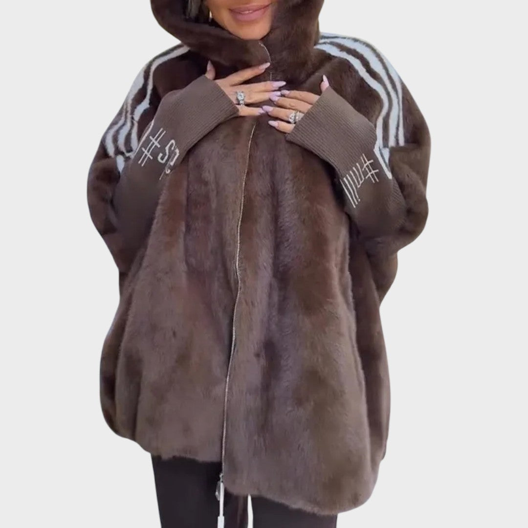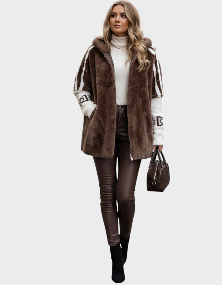 Imagínese sintiéndose abrigada y elegante en los fríos inviernos de España, ¡simplemente envuelta en puro lujo! Ahora deje de soñar, porque eso puede hacerse realidad. Nuestra chaqueta Beatrix es la combinación perfecta de estilo, comodidad y calidez. El abrigo Beatrix es la combinación perfecta entre lujo y comodidad. Confeccionado en piel de tacto sedoso, envuelve el cuerpo con elegancia y modernidad. El diseño tipo capa, con mangas amplias de punto texturizado y detalles contrastantes en los hombros, crea una silueta única e irresistible. Una prenda que transforma el frío en puro glamour.