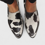 Comodidad estructurada con un diseño llamativo para el día a día. Los loafers Macarena combinan la elegancia de una punta afilada con un acabado en blanco y negro de inspiración animal print. Su tacón bajo, materiales de calidad y ajuste confortable los convierten en una opción ideal para destacar sin esfuerzo.