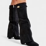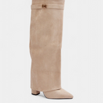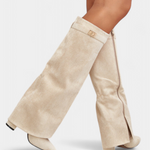 Un diseño atemporal que une versatilidad y distinción. Raya destaca con una silueta hasta la rodilla que estiliza la figura, un tacón bloque que aporta altura cómoda y un acabado suave que transmite refinamiento. Pensadas para acompañar looks diarios o más formales, son el complemento perfecto de la temporada.