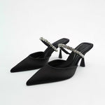 Sandalias de tacón alto con punta afilada adornadas con strass