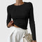 Esta camiseta de manga larga para mujer es una prenda básica con un toque de elegancia moderna. Su diseño entallado realza la silueta, mientras que sus costuras decorativas aportan un estilo sutil y contemporáneo.