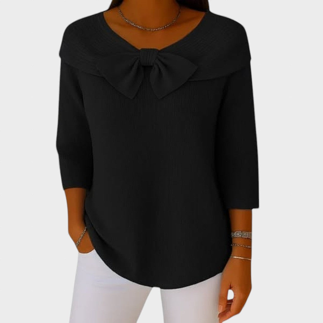 El encantador lazo añade un sutil y romántico encanto al look en general. Es este detalle el que hace que incluso el atuendo más simple adquiera un carácter único. El equilibrio perfecto entre elegancia y comodidad diaria.