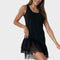 Confeccionado en un tejido suave y cómodo, se adapta al cuerpo sin apretar y ofrece una caída fluida, ideal para días relajados o noches más atrevidas. El contraste entre el estilo básico de la parte superior y la delicadeza del tul hace que esta pieza sea versátil y única, perfecta para llevar con botas, tacones o incluso zapatillas para un look más moderno.