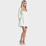 • Escote con Cristales Brillantes: El escote cuadrado está adornado con cristales brillantes que captan la luz mágicamente, asegurando un look deslumbrante a cada paso.