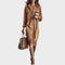 Un vestido midi cómodo y elegante, estilo camisero, confeccionado en pana para un efecto clásico. Perfecto para el día a día, pero siempre elegante.