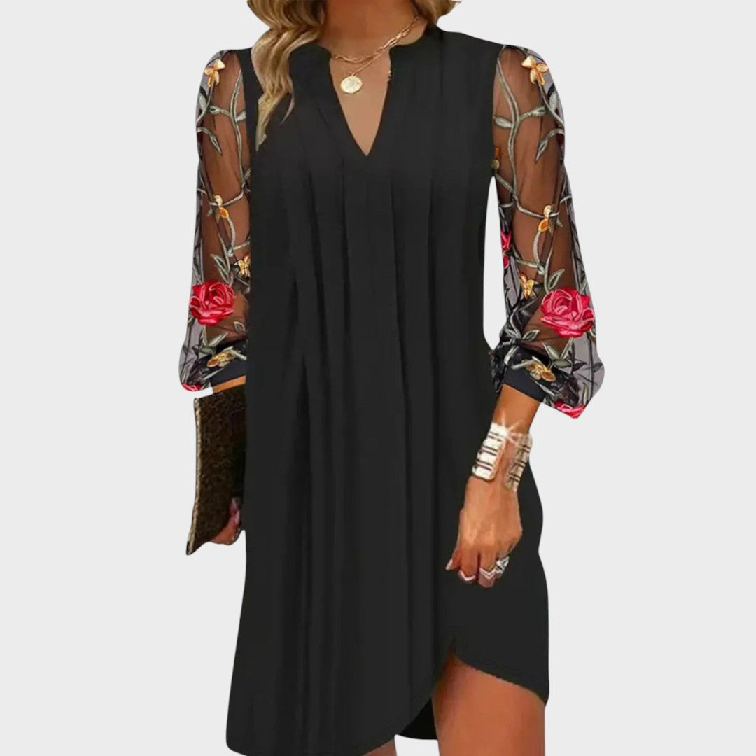 El vestido Diana es una prenda que destaca por su discreción. Su profundo escote en V realza con elegancia la silueta, mientras que las mangas largas y vaporosas crean un look sofisticado y femenino. El estampado floral le añade un toque romántico, y su tejido suave y de alta calidad resulta una delicia al tacto. Un vestido que no grita, sino que susurra: «Aquí estoy: elegante y segura de mí misma».