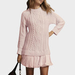 Gabriela combina el tejido de punto acogedor con la sofisticación femenina. Confeccionado en forma de vestido-suéter de corte recto y favorecedor, presenta un delicado bajo plisado que añade un toque chic y divertido a su diseño trenzado atemporal. Ideal para los días frescos, este vestido pasa sin esfuerzo de un conjunto casual a un look de noche elegante. Combínalo con medias y botas para un look acogedor o con tacones para un aire más refinado.